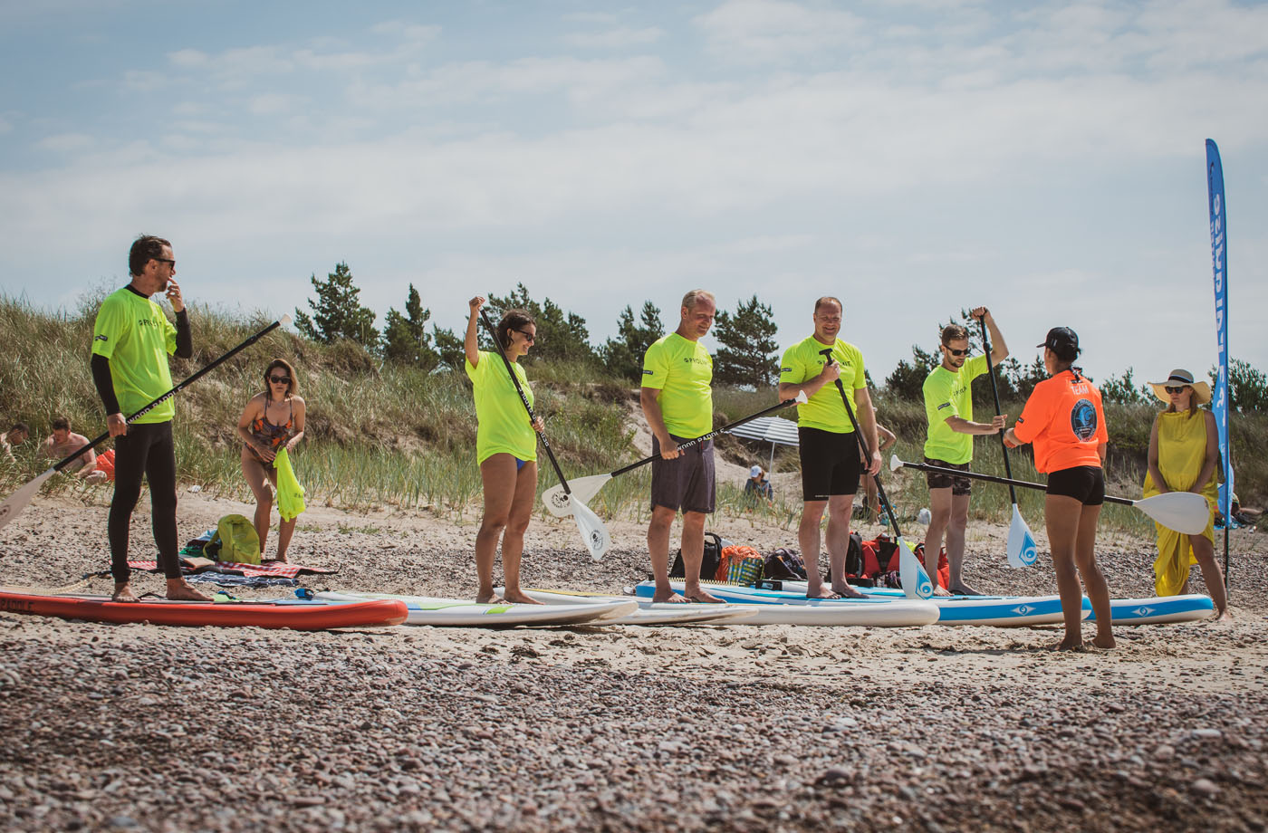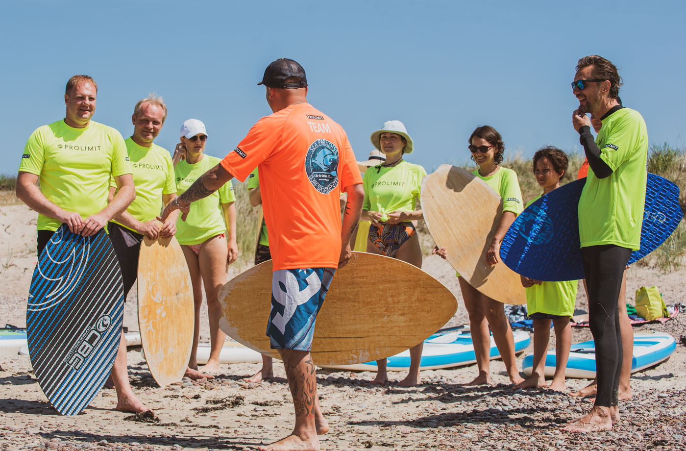 - Grupiniai žaidimai bei estafetės:Azartiškos rungtys irklentėmis ir banglentėmis stiprina komandinę dvasią.