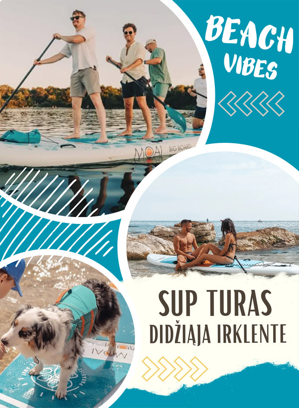 Ieškai smagaus ir kitokio laisvalaikio ant vandens? Šok ant didelės SUP irklentės ir leiskis į nuotykį su draugais! Mūsų SUP turai – tai juokas, komandinė energija ir geros bangos (net ir be bangų :).